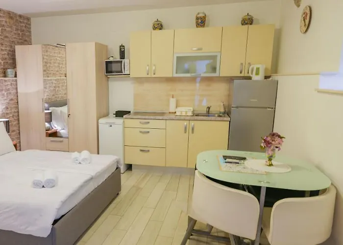 スプリトのスプリト市内中心部地区にあるBlissアパ-トはスプリト空港から25キロメ-トル離れています. アパ-トがあるのは,タイルの床です.